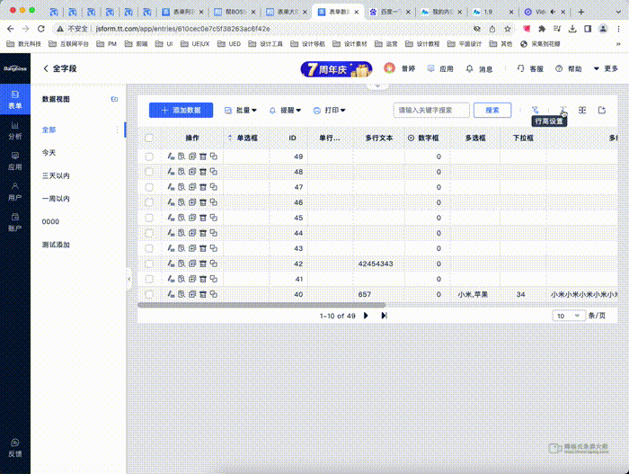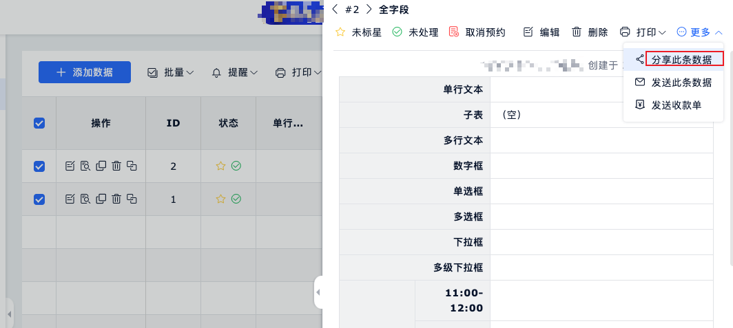 注意:表单列表上的分享数据设置只有管理员权限才可操作。