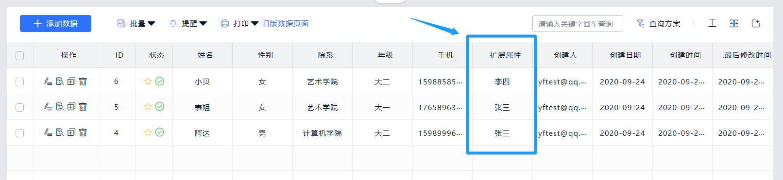 在“表单数据页面”会显示其扩展属性值,能清楚的知道每条数据的渠道来源。